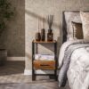 Dit nachtkastje sluit goed aan bij industriële en moderne interieurs, maar werkt ook mooi in minimalistische slaapkamers waar natuurlijke houttinten de basis vormen. Combineer het met een zwart metalen bedframe, strakke wandlampen of accessoires in donkere metaalsoorten om de industriële look te versterken. Voor een zachtere uitstraling kun je werken met warme plaids, beige tinten en natuurlijke stoffen zoals linnen of bouclé. Dankzij de twee lades blijft je slaapkamer opgeruimd en creëert het een georganiseerde, rustige basis.